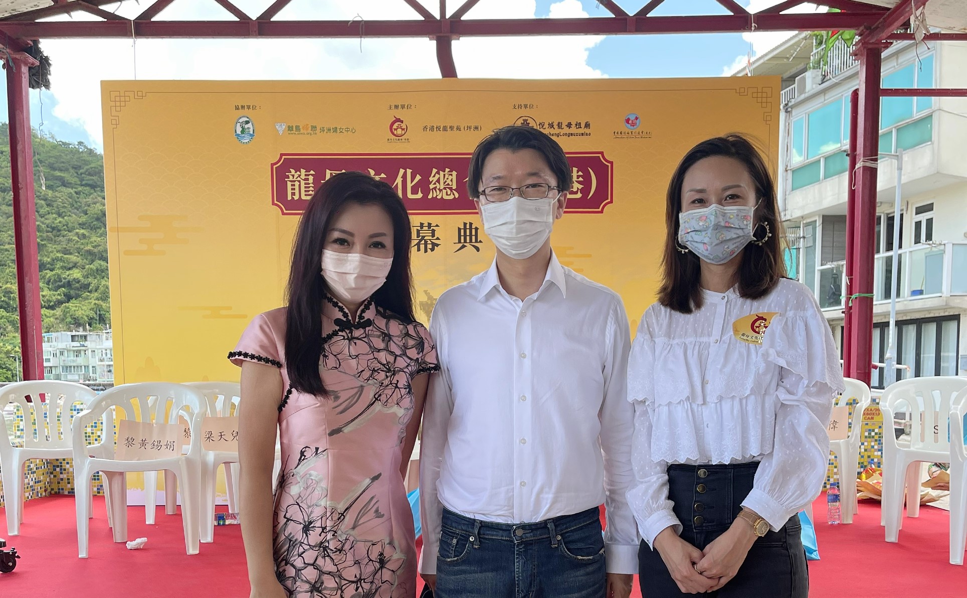 (左起)離島婦聯主席周轉香女士、龍母文化研究總會(香港)會長王紹基先生、香港島婦女聯會主席金鈴女士